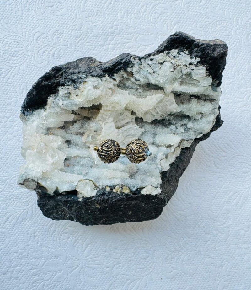 This exquisite Brass Ornate Dual Sphere features a beautifully detailed mandala design, handcrafted in solid brass. Inspired by sacred geometry, the mandala symbolizes harmony, unity, and inner balance making it a meaningful accessory for spiritual and artistic souls alike.