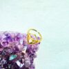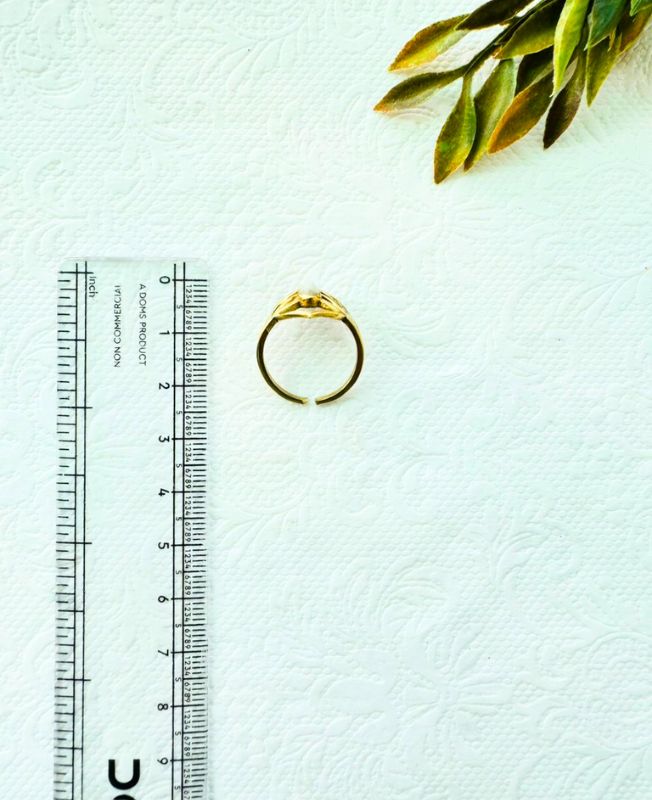 Elegant adjustable brass ring featuring a delicate open frame design and a teardrop-shaped white stone centrepiece.