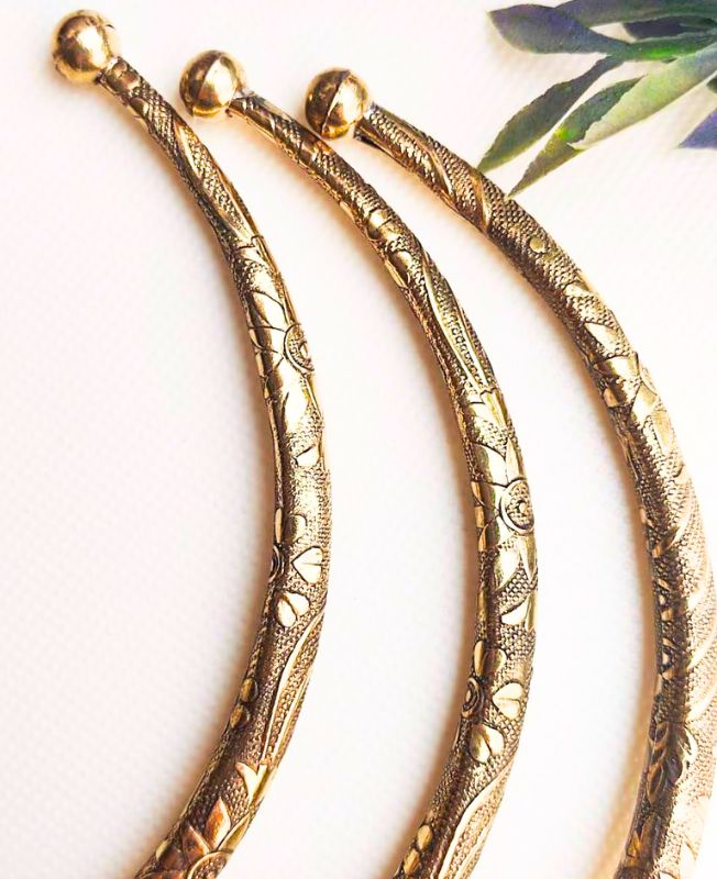 This graceful set includes three handcrafted brass chokers, each adorned with delicate floral engravings that blend vintage appeal with artisanal charm. Designed with a gently rounded silhouette and finished with smooth ball tips, these chokers offer comfort and a striking visual presence.