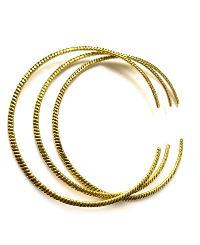 A beautifully detailed set of 3 floral-engraved brass chokers with rounded ends. These handcrafted pieces offer a refined tribal look, perfect for layered styling or minimalist elegance.