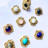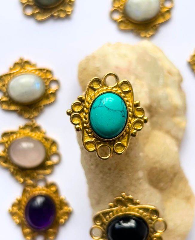 - Materials: Brass alloy base, natural/dyed gemstone