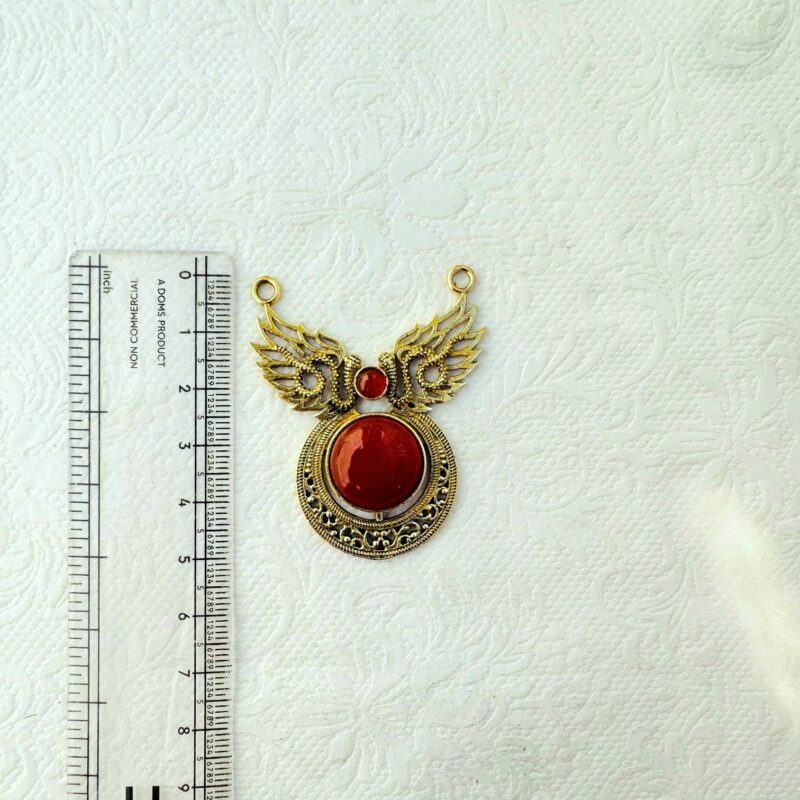 Add a bold ethnic touch to your designs with this high quality brass pendant, featuring a striking coral red stone and intricate tribal details. Perfect for statement jewellery and unique handmade creations.