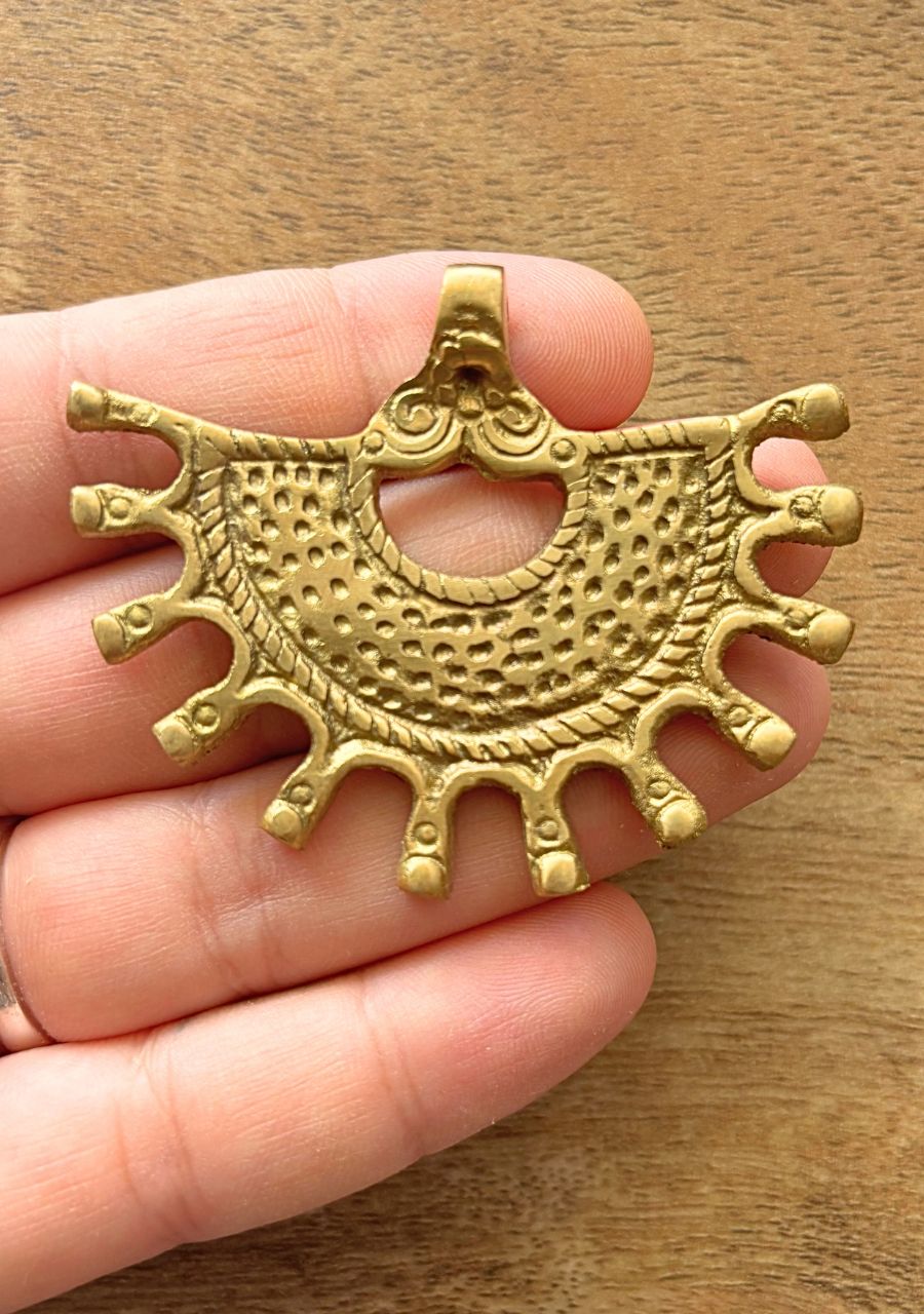 These bold ethnic brass pendants are perfect for adding an artistic and unique flair to your macrame projects, jewelry designs, and other handmade crafts. Explore our shop for more distinctive designs that complement your creations.