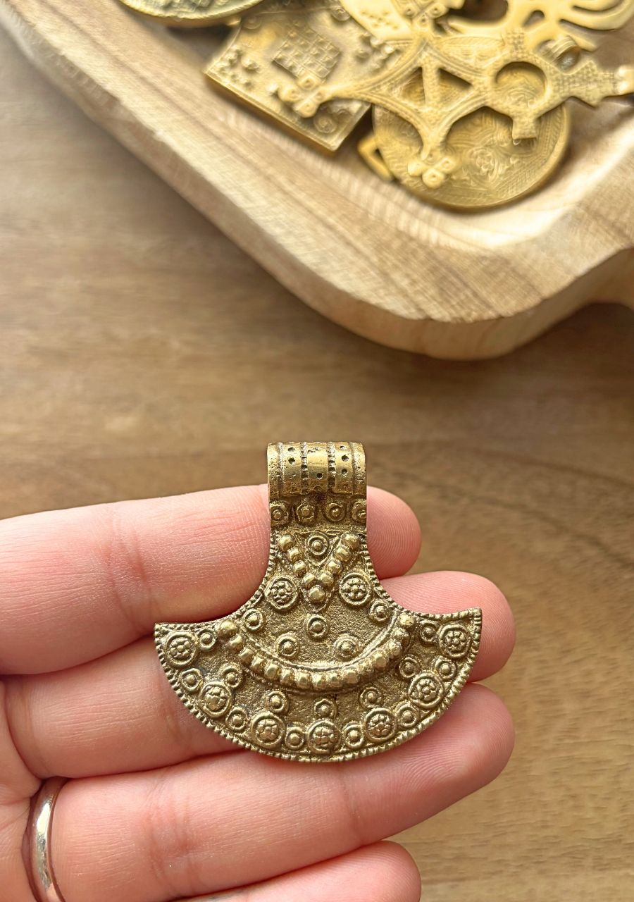 These bold ethnic brass pendants are perfect for adding an artistic and unique flair to your macrame projects, jewelry designs, and other handmade crafts. Explore our shop for more distinctive designs that complement your creations.