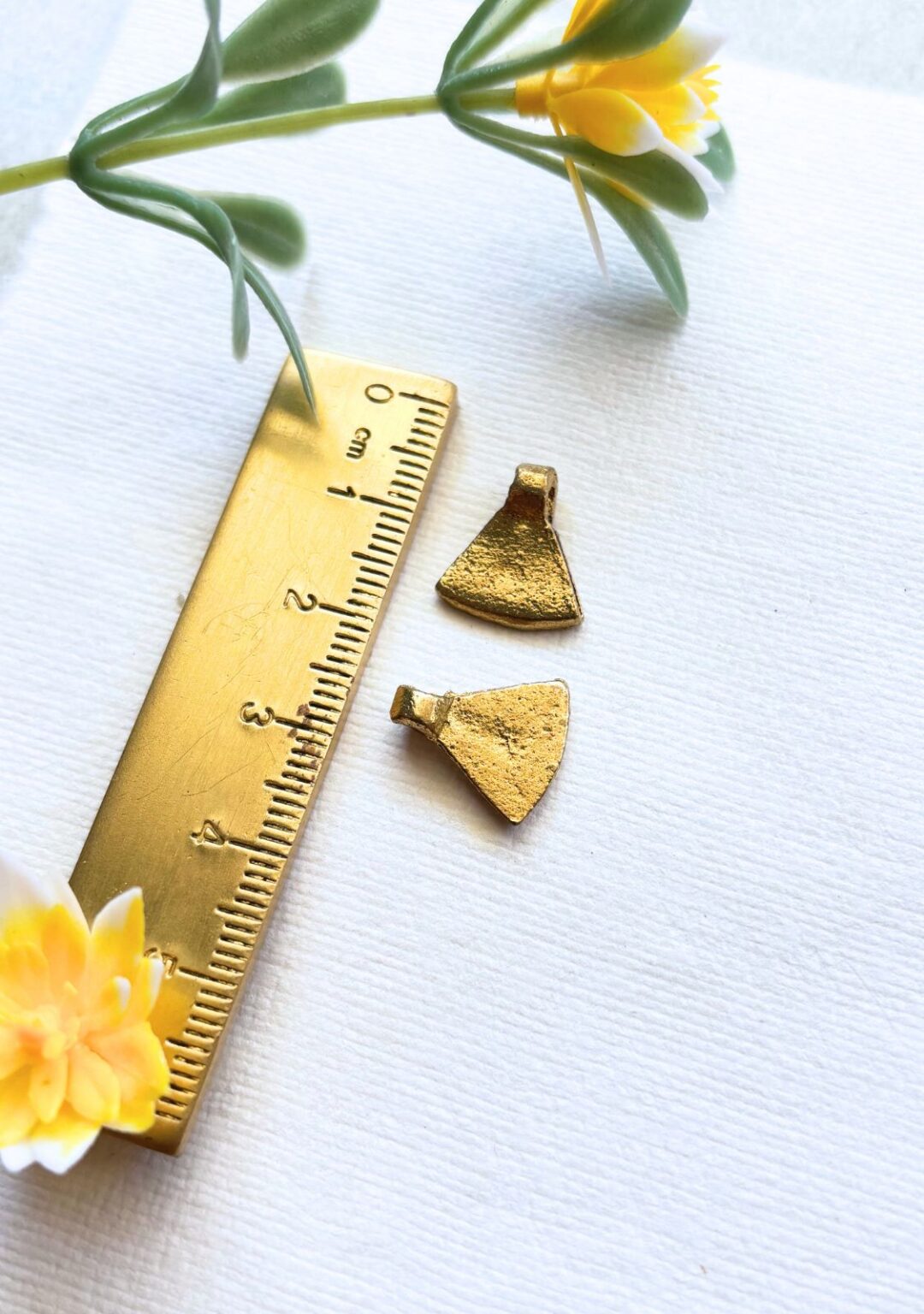 - These Triangle shape Brass Charms are resistant to tarnishing, though they may naturally develop a matte, antique finish over time.