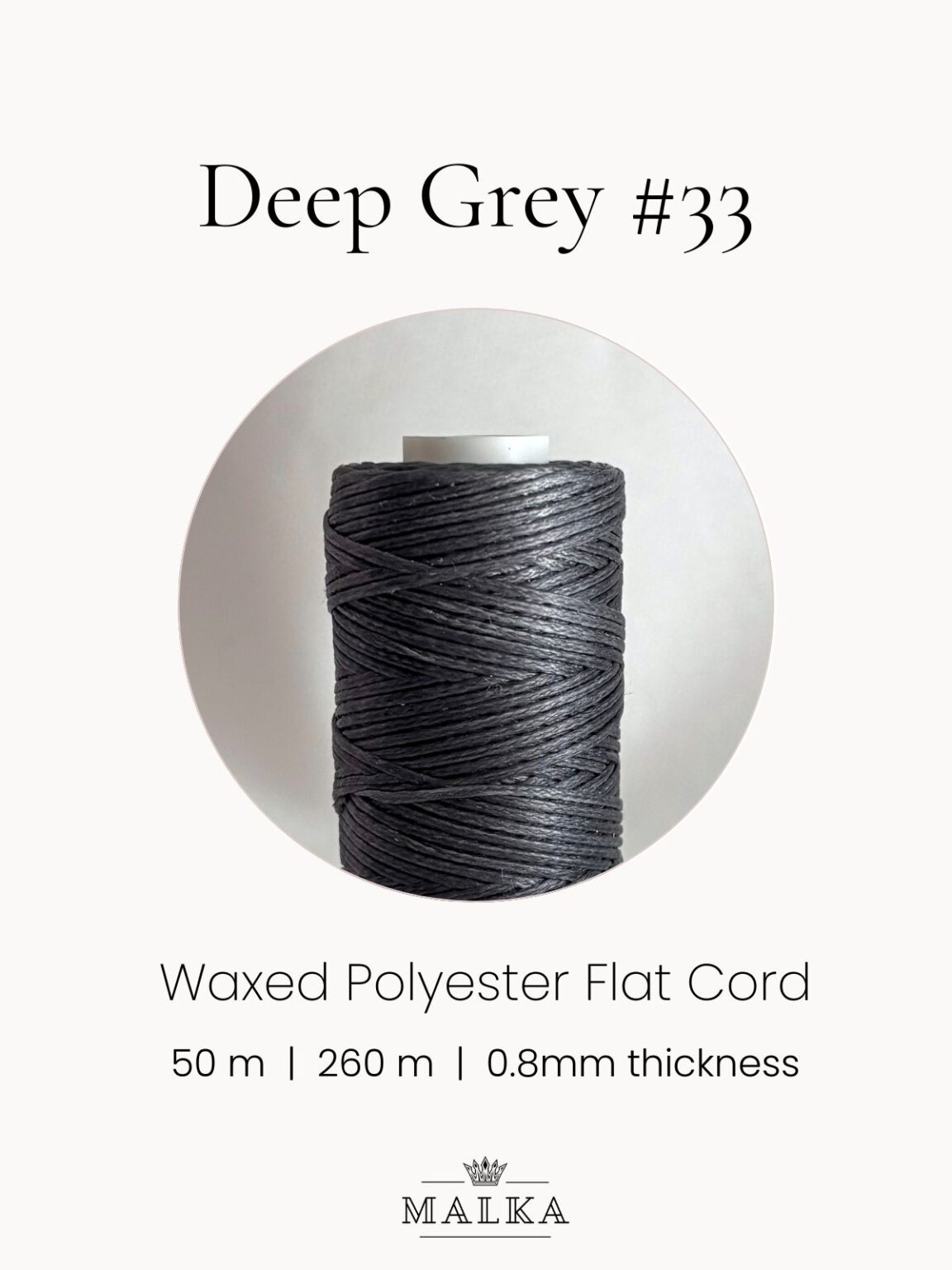 🧵 0.8mm Deep Grey Waxed Macrame Cord – No. 33