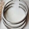 This handcrafted brass choker is finished in a silver-tone patina and adorned with intricate engraved and dotted details along its entire length. The textured surface adds depth and character, reflecting traditional metalworking techniques with a contemporary wearable form.