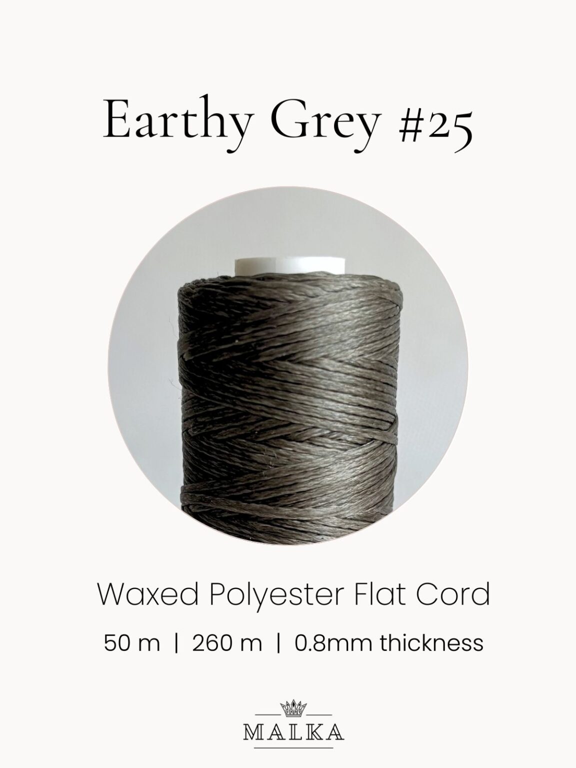0.8mm Flat Waxed Macrame Cord – Earthy Grey (No. 25)