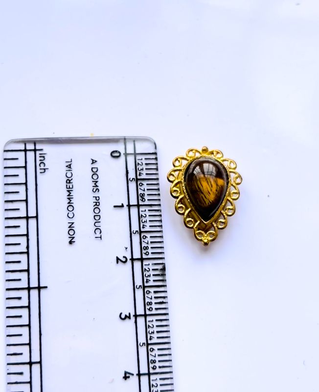 Elegant teardrop-shaped natural stone set in a decorative antique brass frame with dual side loops for easy attachment in bracelets, necklaces, or earrings.