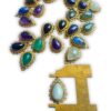 Elegant Teardrop Gemstone Connector With Ornate Brass Frame for Macrame & Jewelry Making
