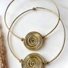 This elegant brass choker is defined by its clean geometry and symbolic spiral form. At its center sits a carefully hand-coiled brass spiral, floating between two smooth wire arcs that gently wrap the neckline. The spiral a timeless symbol of movement, growth, and continuity adds depth and intention without overpowering the design.