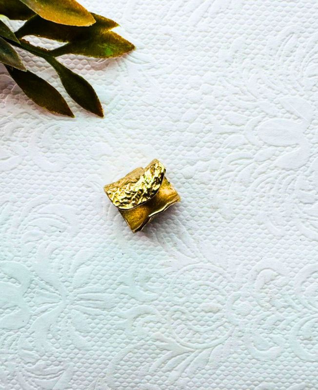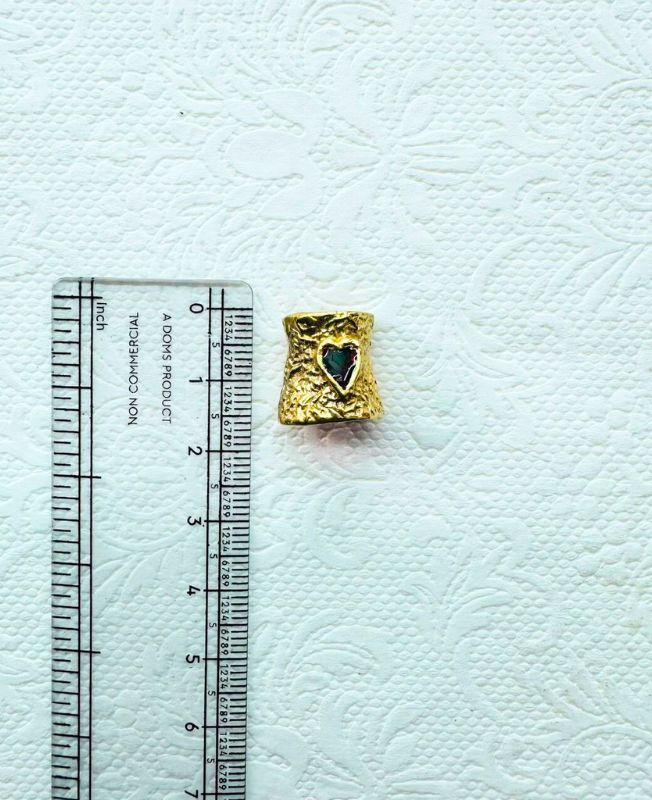 This adorable brass dreadlock bead offers a unique blend of rustic texture and charming detail. The body of the cuff features an appealing hammered or naturally rugged surface, giving it an artisanal, hand-crafted look. Centered on the bead is a carefully inlaid heart shape, filled with a dark stone or enamel, which provides a striking contrast against the warm glow of the brass.