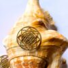 This beautifully crafted golden pendant features the sacred Sri Yantra design, known for its deep spiritual symbolism and geometric precision. The harmonious pattern of interlocking triangles radiates balance and positive energy, making it an ideal choice for meditation jewelry and meaningful decorative pieces.