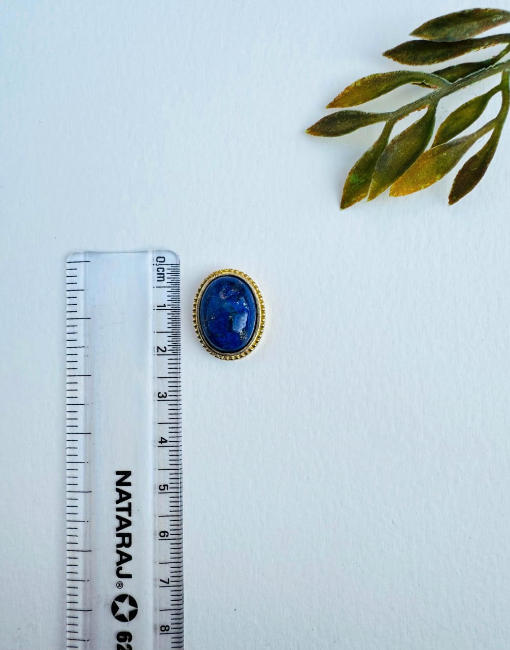 Elegant Lapis Lazuli brass gold toned settings with fine grooved edges, featuring natural Lapis Lazuli stone