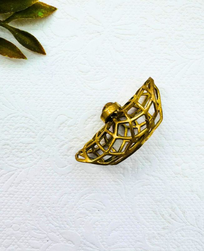 Adorn your hair with this captivating brass dreadlock bead that masterfully blends geometric precision with natural beauty. The cuff is intricately crafted with an openwork lattice pattern, creating a striking visual texture that’s both modern and timeless. At its core, a smooth, round stone with earthy tones (possibly tiger’s eye or a similar natural stone) is inlaid, adding a grounding and sophisticated element to the design.