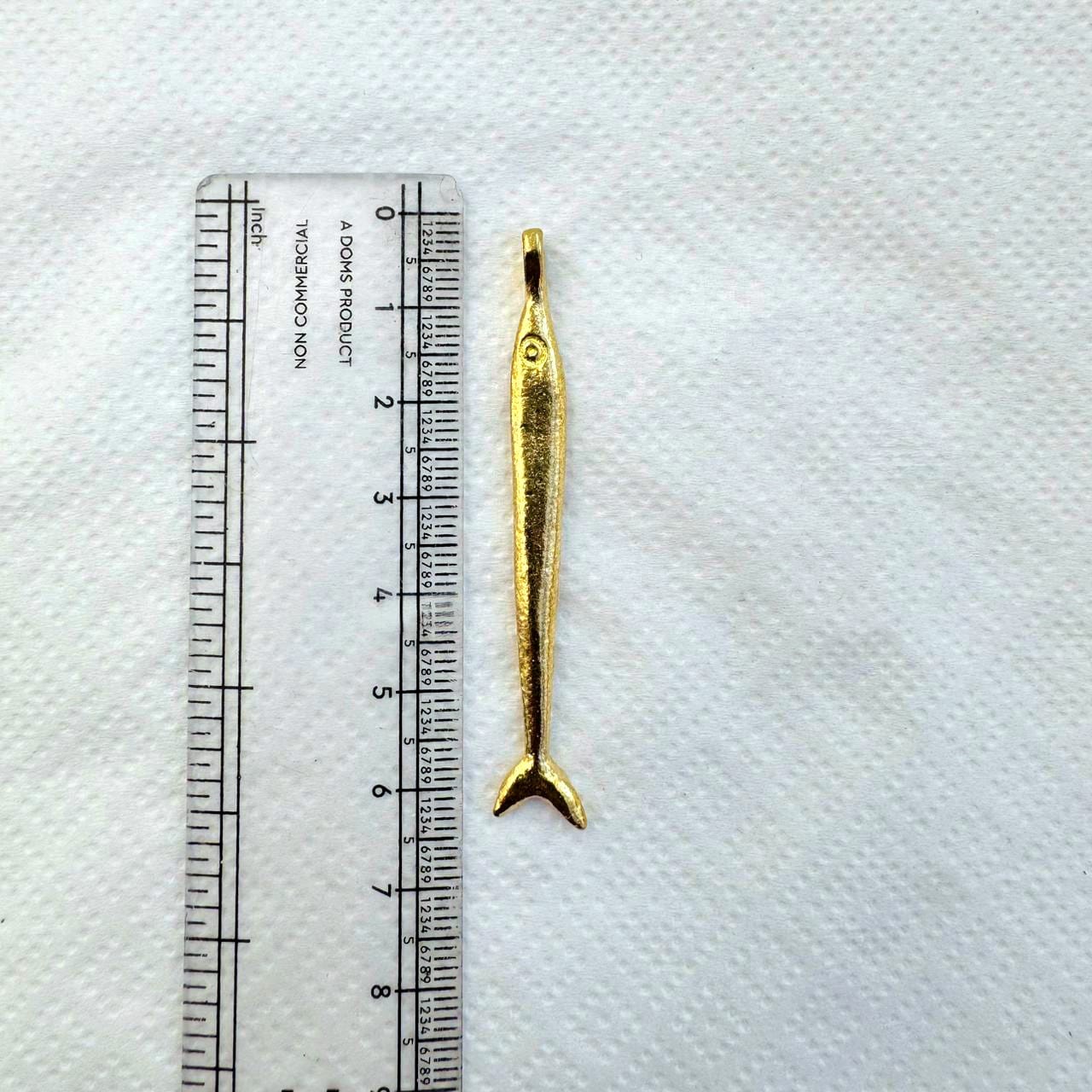 This brass charm features a sleek, elongated fish design with a clean, minimal surface and subtle detailing. Its slim silhouette and soft gold-tone finish give it a refined, contemporary feel while still carrying strong marine and symbolic meaning.