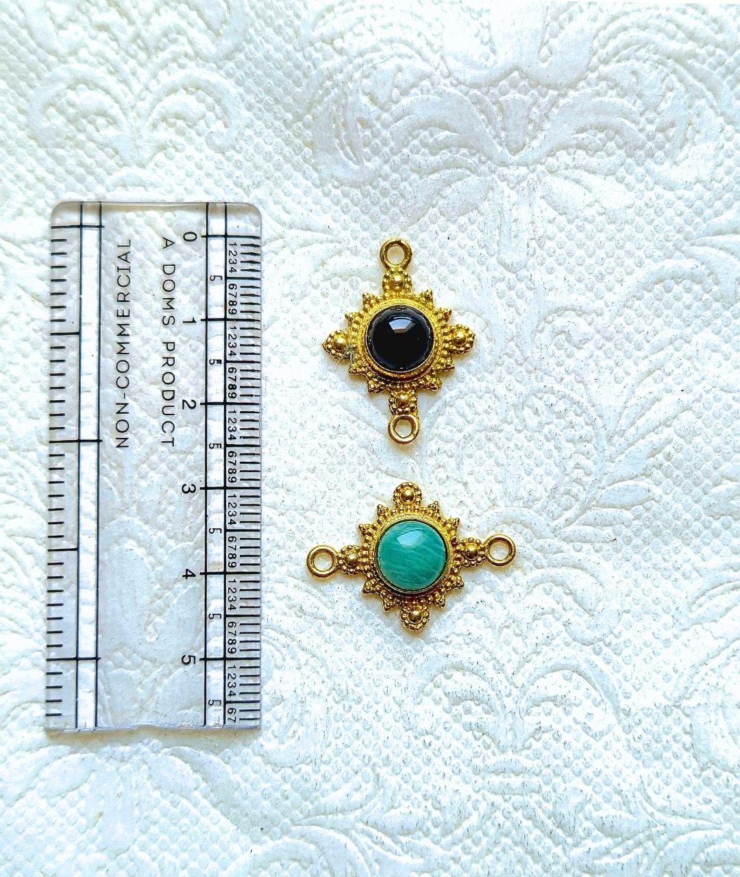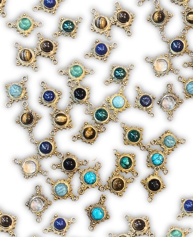 Set of premium brass connectors with real gemstone centers – perfect for jewelry and macrame projects.