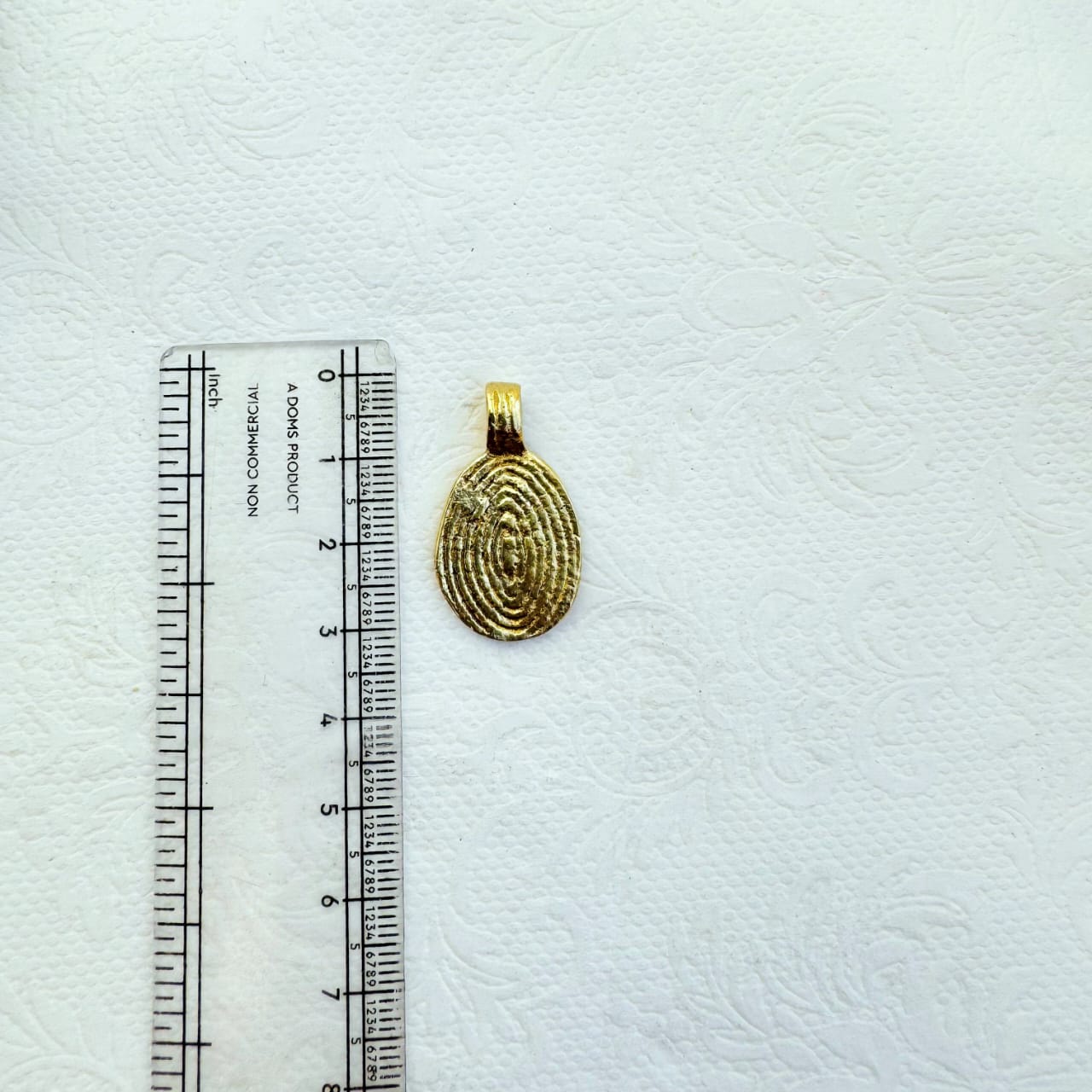 Ideal for bold jewelry, necklaces, and unique accessories. A handcrafted pendant with a raised spiral texture reminiscent of ancient fingerprint or labyrinth motifs. Part of our exclusive collection of ethnic brass pendant, perfect for jewelry making, macrame, and creative projects.
