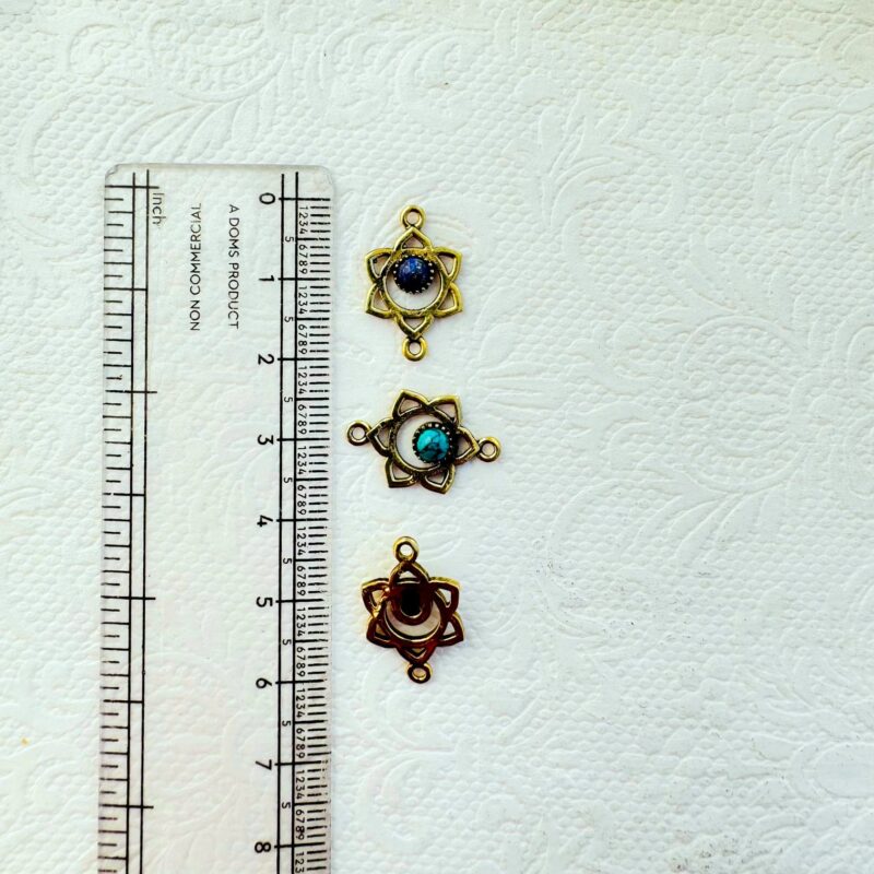Each piece is cast from high-quality brass and lightly polished to retain its artisan texture and warm tone. Due to the handcrafted nature and natural stones, slight variations in color and shape make every charm unique.