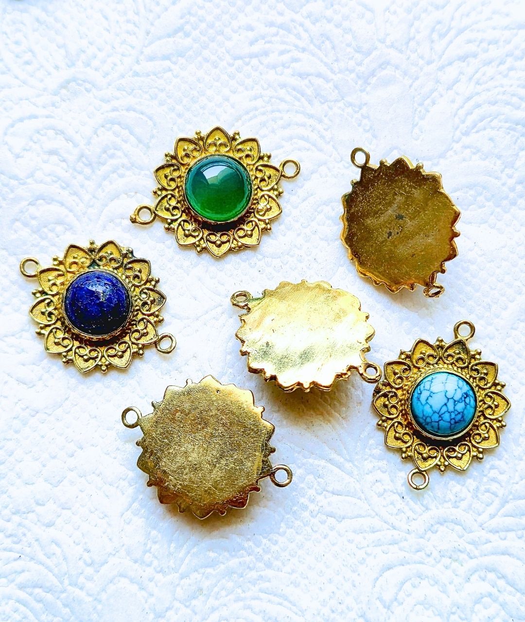 Set of premium brass connectors with real gemstone centers – perfect for jewelry and macrame projects.