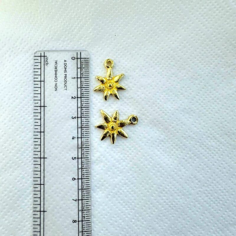 These sun shaped brass charms feature a radiant design with pointed rays and a raised central detail, finished in a warm gold tone. The sun motif symbolizes energy, warmth, and vitality, making this charm a meaningful addition to many jewelry styles.
