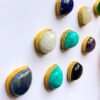 Elegant collection of teardrop brass grooved gemstone connectors, perfect for micro macrame jewellery. Each piece features a finely grooved brass border that beautifully frames natural stones adding a refined, artisanal touch to your handmade creations.
