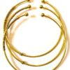 A set of three richly elegant open-ended brass torque chokers with smooth and coiled detailing, perfect for layering or wearing solo.