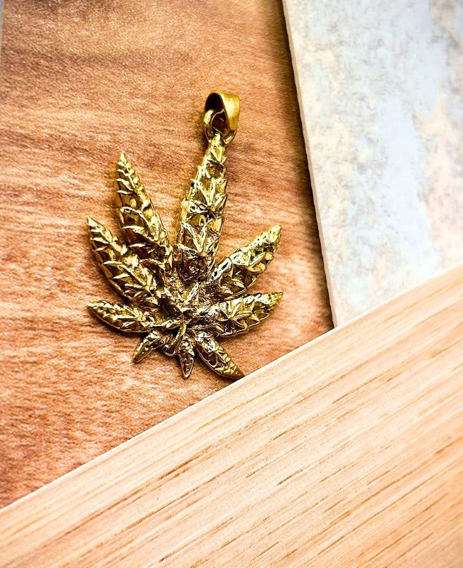 1/3/10 Pieces Cannabis Leaf Brass Pendant A bold brass pendant shaped like a cannabis leaf, finely textured…